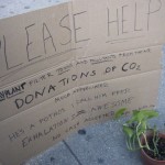 Today I sat on the street with a cardboard sign and a plant. The sign said: “PLEASE HELP my plant remove toxins and pollutants from the air. DONATIONS of CO2 much appreciated. He’s a Pothos. I call him Fred. Exhalations = Awesome. No cash accepted.”