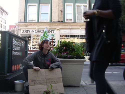 Over the course of 3 hours, 22 people stopped to read the sign or talk to me. As thanks, I handed them a flier with a friendly list of other plants that clean the air. Three people offered me money, one guy tried to give me a granola bar, all of which I politely declined. This was all part of the Conflux Festival in NYC. While I was sitting on my rear, there were workshops, panels, performances and hikes happening all over the East Village