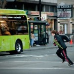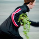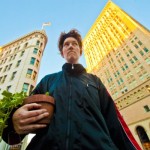 The other day I ran a yellow light, and it was mildly harrowing. So I decided to do it again, full-force jogging style, with an English Ivy. We would languidly dodge traffic while making carbon dioxide and oxygen together. I think the Ivy might have been working harder, as it was removing toxins and airborne feces as well. I ran around the intersection at 12th and Broadway in downtown Oakland for about a half-hour, preceded by a 15-minute stretch on the corner. Everyone always thinks I’m selling plants, even when it’s obvious I’m suited up to go jogging with them. In this video, a plaza security guard is chatting with Sarah Cross, who is filming.
